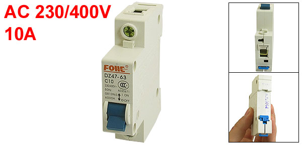 Product Name Miniature Circuit Breaker Model Number DZ47-63 C10 Rated Circuit Breaking Capacity 6000A Rated Voltage AC 230/400V Rated Current 10A Poles 1 Pole Rail Mounting 35mm DIN Rail Overall Size (Approx) 66 x 18 x 77mm/ 2.6" x 0.7" x 3" (L*W*T ) Material Plastic, Electric Components Color As Picture Shown Weight 81g Package Content 1 x Miniature Circuit Breaker - Reviews
