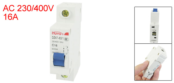 Product Name Miniature Circuit Breaker Model Number DZ47-63 C 16 Rated Circuit Breaking Capacity 6000A Rated Voltage AC 230/400V Rated Current 16A Poles 1 Pole Rail Mounting 35mm DIN Rail Overall Size (Approx) 66 x 18 x 77mm/ 2.6" x 0.7" x 3" (L*W*T ) Material Plastic, Electric Components Color Off White Weight 94g Package Content 1 x Miniature Circuit Breaker - Reviews