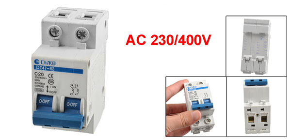 Product Name Circuit Breaker Model No. DZ47-63 C20 Material Plastic, Electric Components Main Color White, Blue Rated Voltage AC 230/400V Rated Current 20A Breaking Capacity 6000A Total Size (Approx.) 8 x 3.5 x 7.4cm / 3.1" x 1.4" x 2.9"(L*W*H) Number of Poles 2 Mount Type DIN Rail Weight 185g Package Content 1 x Circuit Breaker - Reviews