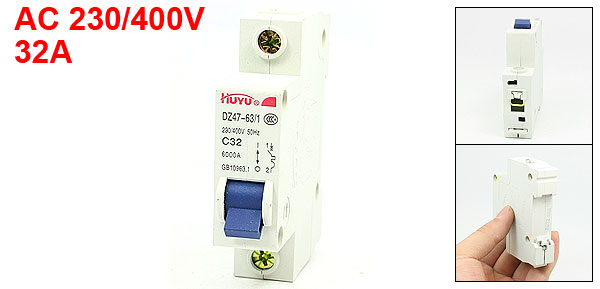 Product Name Circuit Breaker Model No. DZ47-63/1P C32 Exrternal Material Plastic, Metal Rated Voltage AC 230/400V 50Hz Rated Current 32A Breaking Capacity 6000A Total Size (Approx.) 77 x 65 x 18mm/ 3" x 2.6" x 0.7" (L*W*T) Number of Poles 1 Mount Type 35mm DIN Rail Mounted Net Weight 95g Package Content 1 x Circuit Breaker - Reviews