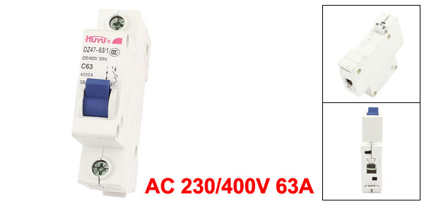 Main Color White, Blue Brand DMiotech Country of Manufacture CHINA Model DZ47-63 C63 Material Plastic, Electric Components Rated Circuit Breaking Capacity 4000A Poles 1 Net Weight 94g Rated Voltage 230/400V Package Content 1 x Miniature Circuit Breaker Rail Mounting 35mm DIN Rail Rated Current 63A Overall Size (Approx) 75 x 65 x 15mm/ 3" x 2.6" x 0.6" (L*W*T ) - Reviews