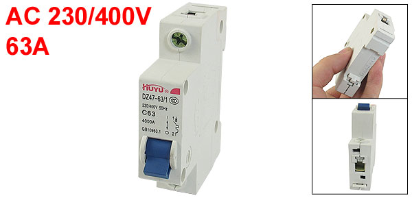 Product Name Miniature Circuit Breaker Model Number DZ47-63 C 63 Rated Circuit Breaking Capacity 6000A Rated Voltage AC 230/400V Rated Current 63A Poles 1 Pole Rail Mounting 35mm DIN Rail Overall Size (Approx) 66 x 18 x 77mm/ 2.6" x 0.7" x 3" (L*W*T ) Material Plastic, Electric Components Color Off White Weight 94g Package Content 1 x Miniature Circuit Breaker - Reviews