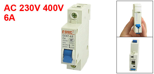 Product Name Circuit Breaker Model Number DZ47-63 C6 Rated Circuit Breaking Capacity 6000A Rated Current 6A Rated Voltage AC 230/400V Number of Poles 1 Rail Mounting 35mm DIN Rail Overall Size (Approx) 66 x 18 x 77mm/ 2.6" x 0.7" x 3" (L*W*T ) Material Plastic, Electric Components Color As Picture Shown Weight 79g Package Content 1 x Circuit Breaker - Reviews