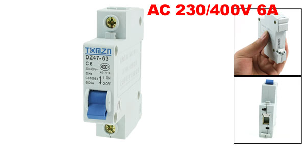 Product Name Circuit Breaker Model No. DZ47-63 C6 Exrternal Material Plastic, Metal Rated Voltage AC 230/400V 50Hz Rated Current 6A Breaking Capacity 6000A Total Size (Approx.) 72 x 18 x 70mm/ 2.8" x 0.7" x 2.8" (L*W*T) Number of Poles 1 Mount Type 35mm DIN Rail Mount Net Weight 85g Package Content 1 x Circuit Breaker - Reviews