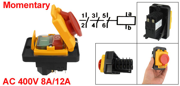 AC 230V 15A/12A/6A DPST 2-Phase Start-up Motor Momentary Electromagnetic Switch