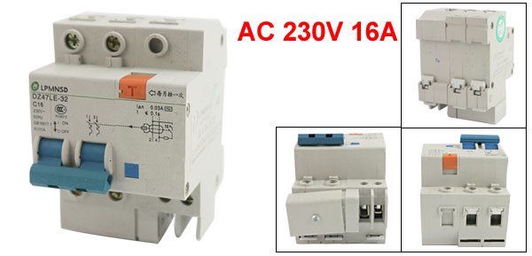 Product Name Miniature Circuit Breaker Model Number DZ47LE-32 C16 Rated Circuit Breaking Capacity 6000A Rated Voltage AC 230V 50Hz Rated Current 16A Poles 2 Pole Screw Terminal 4 Rail Mounting 35mm DIN Rail Overall Size (Approx) 93 x 75 x 63mm/3.4" x 3" x 2.5" (L*W*T ) Material Plastic, Electric Components Main Color White Net Weight 267g Package Content 1 x Miniature Circuit Breaker - Reviews