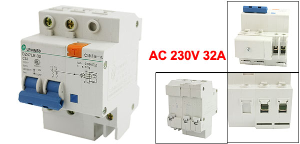 Product Name Miniature Circuit Breaker Model Number DZ47LE-32 C32 Rated Circuit Breaking Capacity 3KA Rated Voltage AC 230V 50Hz Rated Current 32A Poles 2 Pole Screw Terminal 4 Rail Mounting 35mm DIN Rail Overall Size (Approx) 93 x 75 x 62mm/3.4" x 3" x 2.4" (L*W*T ) Material Plastic, Electric Components Main Color White Net Weight 269g Package Content 1 x Miniature Circuit Breaker - Reviews