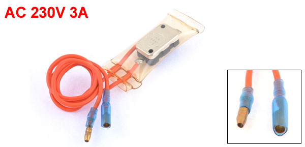 Product Name Refrigerator Defrost Thermostat Action Temperature -7 Celsius Degree Electrical Ratings AC 230V 3A Body Size 7.7 x 2.8 x 1.3cm / 3" x 1.1" x 0.5" (L*W*T) Each Wire Connector Diameter 3.7mm / 0.14"