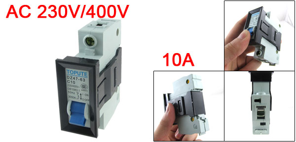 Product Name Miniature Circuit Breaker Model No. DZ47-63 C10 Rated Voltage AC 230V/400V Rated Current 10A Rated Breaking Capacity 3000A Number of Poles 1P Overall Size (Approx.) 79 x 27 x 71mm / 3.1" x 1.06" x 2.8"(L*W*H Material Plastic, Electric Components Weight 88g Package Content 1 x Miniature Circuit Breaker - Reviews