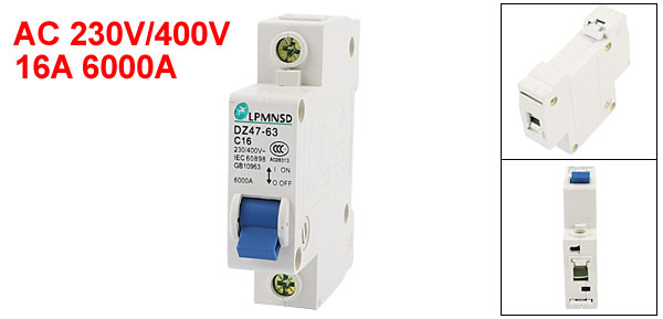 Main Color White, Blue Brand DMiotech Country of Manufacture CHINA Model DZ47-63 C16 Material Plastic, Electric Components Rated Circuit Breaking Capacity 6000A Poles 1 Pole Net Weight 76g Rated Voltage AC 230V/400V Package Content 1 x Miniature Circuit Breaker Rail Mounting 35mm DIN Rail Rated Current 16A Overall Size (Approx) 79 x 65 x 18mm/3.1" x 2.5" x 0.71" (L*W*T ) - Reviews