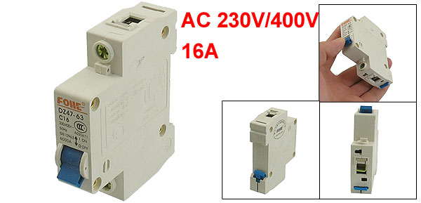 Product Name Miniature Circuit Breaker Model No. DZ47-63 C16 Exrternal Material Plastic, Metal Rated Voltage AC 230V/400V 50Hz Rated Current 16A Breaking Capacity 6000A Total Size (Approx.) 77 x 18 x 72mm/ 3" x 0.7" x 2.8" (L*W*T) Number of Poles 1 Mount Type 35mm DIN Rail Mount Weight 82g Package Content 1 x Miniature Circuit Breaker - Reviews
