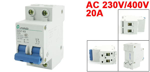 Product Name Miniature Circuit Breaker Model Number DZ47-63 C20 Rated Circuit Breaking Capacity 6000A Rated Voltage AC 230V/400V Rated Current 20A Poles 2 Pole Rail Mounting 35mm DIN Rail Overall Size (Approx) 79 x 73 x 35mm/3.1" x 2.8" x 1.4" (L*W*T ) Material Plastic, Electric Components Main Color White Net Weight 159g Package Content 1 x Miniature Circuit Breaker - Reviews