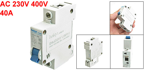 Product Name Miniature Circuit Breaker Model No. DZ47-63 C40 Rated Voltage AC 230V/400V Rated Current 40A Rated Breaking Capacity 6000A Number of Poles 1P Overall Size (Approx.) 77 x 66 x 20mm / 3.0" x 2.6" x 0.79" (L*W*T) Material Plastic, Electric Components Weight 89g Package Content 1 x Miniature Circuit Breaker - Reviews