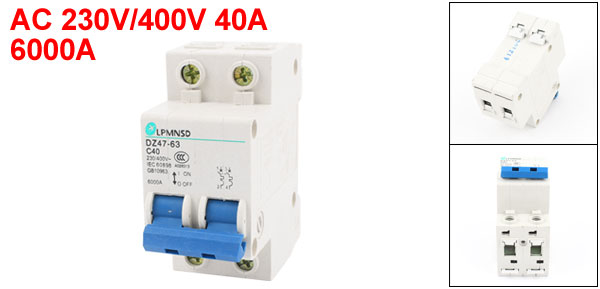AC 230V/400V 40A ON/OFF Switch Double Pole Mini Circuit Breaker 6000A