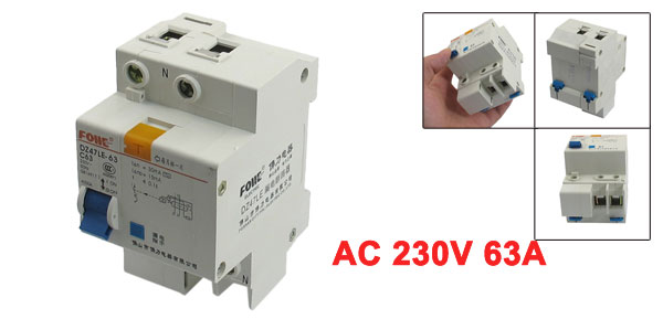 Product Name Earth Leakage Circuit Breaker Model No. DZ47LE-63 C63 Exrternal Material Plastic, Metal Rated Voltage AC 230V 50Hz Rated Current 63A Breaking Capacity 4000A Rated Residual Operating Current 30mA Rated Residual Operating Time <=0.1s Total Size (Approx.) 88 x 54 x 65mm/ 3.5" x 2.1" x 2.6" (L*W*T) Number of Poles 1 Neutral +N Mount Type 35mm DIN Rail Mount Weight 224g Package Content 1 x Earth Leakage Circuit Breaker - Reviews