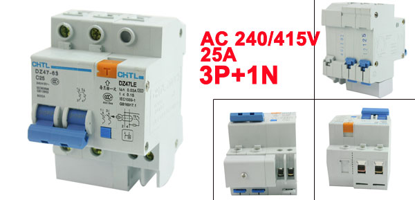 Product Name Earth Leakage Circuit Breaker Model No. DZ47-63 C25 Exrternal Material Plastic, Metal Rated Voltage AC 240/415V Rated Current 25A Breaking Capacity 6000A Residual Current Breaker Residual Operating Current: 30mA