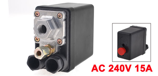 Product Name Air Compressor Pressure Switch Type 1 Port, Normally Closed(NC) Max. Voltage AC 240V Max. Current 15A Pressure 175PSI, 12Bar Joint Thread Hole Dia.(Each) 1/4" (PT) Inlet Hole Dia 15mm / 5/8" Inlet Thread Dia. 10mm/ 13/32" Total Size 11 x 4.5 x 8cm / 4.3" x 1.8" x 3.1" (L*W*T) Button Diameter 2cm/ 0.8" Material Metal, Plastic Main Color Black, Red Weight 283g Package Content 1 x Air Compressor Pressure Switch - Reviews