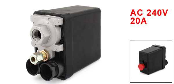 Product Name Air Compressor Pressure Switch Type Single Ports, 2 Phase, Normally Closed(NC) Max. Voltage AC 240V Max. Current 20A Pressure 175PSI, 12 Bar Joint Thread Hole Dia.(Each) 1/4" (NPT) Inlet Hole Dia.(Each) 6mm/ 0.2" Inlet Thread Dia. 10mm/ 0.39" Total Size 12.5 x 8 x 5cm/ 5" x 3.1" x 2" (L*W*T) Button Diameter 2cm/ 0.8" Material Metal, Plastic Main Color Black, Red Weight 284g Package Content 1 x Air Compressor Pressure Switch - Reviews