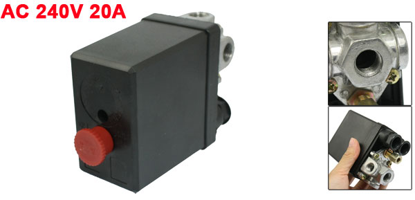 Product Name Air Compressor Pressure Switch Type 4 Ports, (NC, NO) Max. Voltage AC 240V Current 20A Pressure 175PSI, 12 Bar Joint Thread Hole Dia.(Each) 1/4" (NPT) Inlet Hole Dia.(Each) 13mm/ 0.51" Inlet Thread Dia. 6mm/ 0.23" Total Size 12.5 x 8 x 5cm/ 4.9" x 3.1" x 2" (L*W*T) Button Diameter 2cm/ 0.8" Material Metal, Plastic Main Color Black, Red Weight 307g Package Content 1 x Air Compressor Pressure Switch - Reviews
