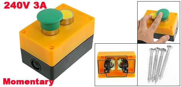 AC 240V 3A Green Mushroom Yellow Momentary Push Button Switch Station Box NO N/O
