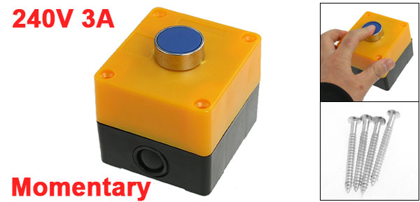 Product Name Push Button Switch Station Action Type Momentary Contact Type (NO)Normal Open Working Voltage AC 240V Working Current 3A Ith 10A Ui 600V Uimp 6KV Button Diameter 2.8cm / 1.1" Casing Size 7.8 x 7.2 x 6.5cm / 3.1" x 2.8" x 2.56"(L*W*H) Casing Material Plastic Main Color Blue, Yellow, Black Weight 148g Package Content 1 x Push Button Switch Station - Reviews