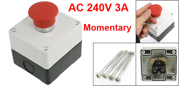 AC 240V 3A Red Mushroom NC Momentary Push Button Switch Station