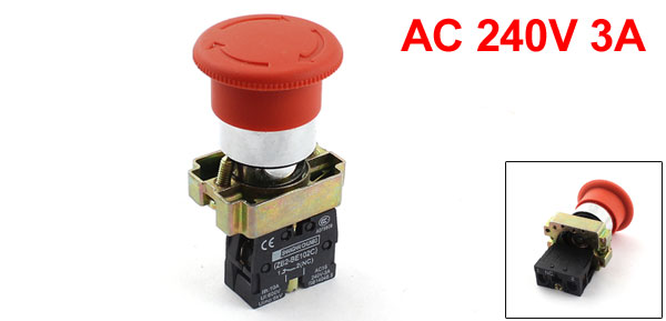 AC 240V 3A SPST Red Mushroom Head Locking Stopping Push Button Switch