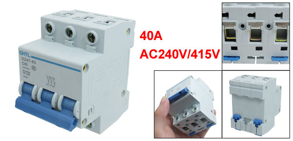 Product Name Miniature Circuit Breaker Model Number DZ47-63 C40 Rated Circuit Breaking Capacity 4500A Rated Current 40A Rated Voltage AC240V/415V Number of Poles 3 Overall Size (Approx.) 7.7 x 6.6 x 5.3cm / 3" x 2.6" x 2.1"(L*W*T ) Material Plastic, n Electric Components Color As Picture Shown Weight 271g Package Content 1 x Miniature Circuit Breaker - Reviews