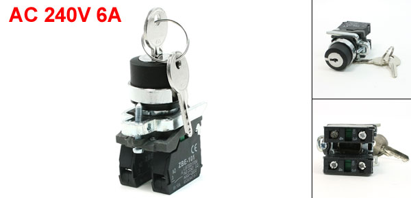 AC 240V 6A NO Key Rotary Key Locking Style Push Button Switch ZBE-101