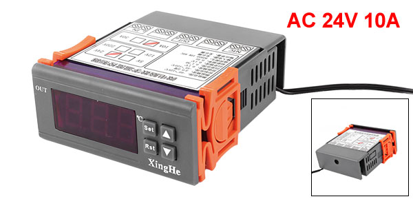 Product Name Digital Temperature Controller Input Singal Thermocouple Power Supply AC 24V 10A Main Color Gray, Orange Temp Display LED Digital Display Temp Range -55°C to +120°C (+-0.2) Sensor B3950 10K NTC Thermocouple Cable Length 1M / 3.3Ft Mounting Size 70.5 x 29mm / 2.8" x 1.1"(W*H) Overall Size 77 x 35 x 88mm / 3" x 1.4" x 3.5" (L*W*T) Material Plastic & Electronic Parts Weight 103g Package Content 1 x Digital Temperature Controller