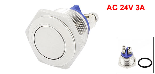 AC 24V 3A 16mm Thread Panel Mount SPST Momentary Metal Push Button Switch