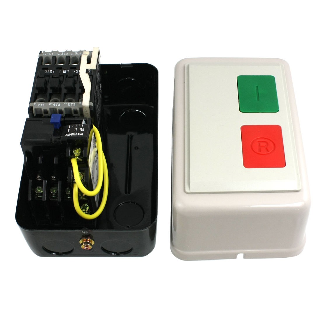 Product Name Motor Electromagnetic Starter Shell Material Metal AC Contactor Coil: 24VAC Ie(AC-1):max 28A Ui:660V Ue 220V 380V 500V 660V AC-3 3KW / 4HP 5.5KW / 7.37HP 4KW / 5.36HP 4KW / 5.36HP Contact:4NO, 3 Phase Relay Setting Current: 9-13A Ui: 690V Ith: 10A Control Box Total Size 161 x 95 x 106mm / 6.3" x 3.7" x 4.1" (L * W * H) Fixing Hole Diameter 4.3mm / 0.16" Hole Center Distance 122 x 55mm / 4.8" x 2.1" (L * W) Box Color Gray, Black Weight 927g Package Content 1 x Motor Electromagnetic Starter - Reviews