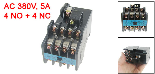Product Name Auxiliary Relay Model No. JZ17-44 Coil AC 24V, 50/60Hz Load AC 380V, 5A Contact Type 4 NO + 4 NC Ith 6A Overall Size 67.6 x 45.5 x 86mm / 2.6" x 1.8" x 3.4"(L*W*H) Fixing Holes Size 7.3 x 4.7mm / 0.28" x 0.18"(L*W) Fixing Holes Spacing 42 x 30mm / 1.6" x 1.2"(L*W) Color Black Material Resin & Metal Net Weight 287g Package Content 1 x Auxiliary Relay - Reviews