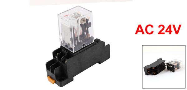 AC 24V Coil DPDT 8 Pin Red LED General Purpose Power Relay w Socket Base