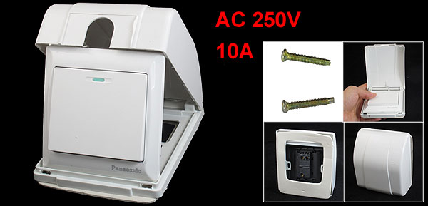 AC 250V 10A 1 Gang White Shell Wall Panel Switch w Splash Proof Box