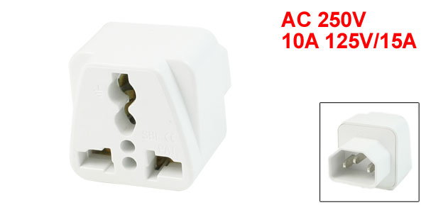 AC 250V/10A 125V/15A UK AU US Socket to C14 Plug Travel Power Adapter White