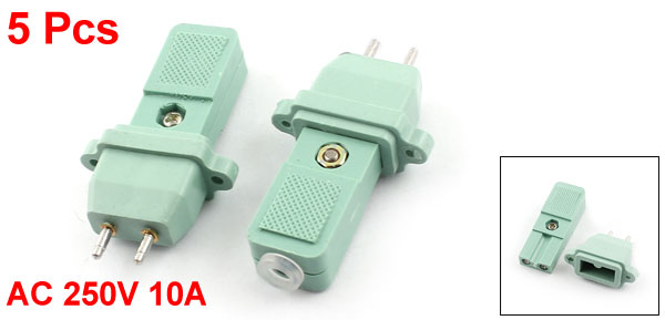 AC 250V 10A 2-Pin Male Female Plug Power Socket Connector Green 5Pcs