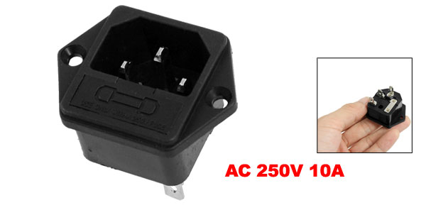 DetailsAC 250V 10A 3 Pins IEC 320 C14 Power Inlet Socket w 5x23mm Fuse Holder  Product Name Power Inlet Socket Power Supply AC 250V 10A Plug Type IEC 320 C14 Pins Number 3 Mounting Type Clamp Type Mounting Size 3.05 x 2.7 x 2.7cm / 1.2" x 1.06" x 1.06" (L*W*T) Overall Size 4.5 x 3.2 x 3.2cm / 1.8" x 1.3" x 1.3" (L*W*T) Fit Fuse Size 5 x 23mm / 0.2" x 0.9" (D*L) Material Plastic, Metal Color Black, Silver Tone Net Weight 16g Package Content 1 x Power Inlet Socket