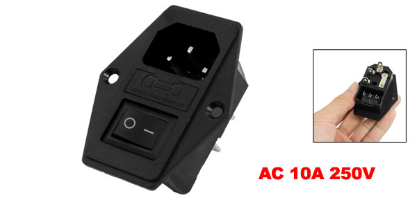 Product Name Male Power Plug Power Supply AC 10A 250V Inlet Plug Type IEC320 C14 Terminals Number 3 Total Size(Approx) 60 x 50 x 32mm/ 2.4" x 2" x 1.3" (L*W*T) Fit for Fuse Size 24 x 5mm / 0.94" x 0.19" (L*D) Mouting Hole 49 x 26mm / 1.92" x 1.02" (L*W) Material Plastic w Electronic Parts Color Black Weight 23g Package Content 1 x Male Power Plug - Reviews