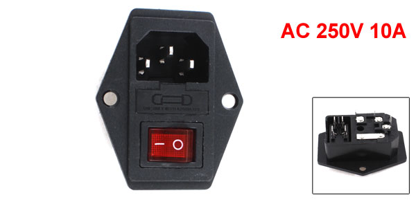 AC 250V 10A 3P IEC320 C14 Inlet Plug Power Socket w Fuse Holder Black Red