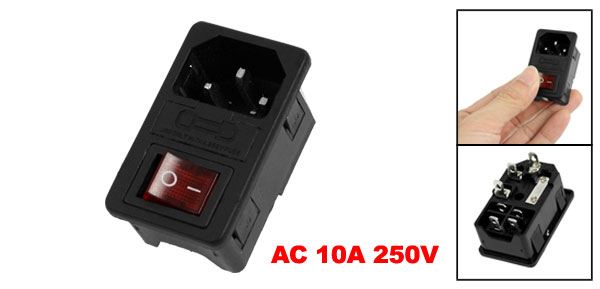 Product Name Male Power Plug Power Supply AC 10A 250V Inlet Plug Type IEC320 C14 Terminals Number 3 Total Size(Approx) 5 x 3 x 3.1cm / 2" x 1.18" x 1.22"(L*W*T) Fit for Fuse Size 24 x 5mm / 0.94" x 0.19"(L*D) Mouting Hole 49 x 26mm / 1.92" x 1.02"9L*W) Material Plastic w Electronic Parts Color Black & Red Weight 24g Package Content 1 x Male Power Plug - Reviews