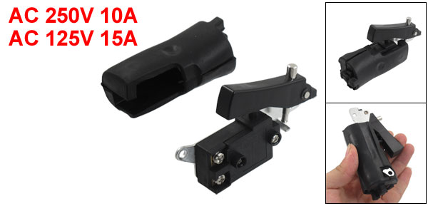 AC 250V 10A AC 125V 15A SPST NO Lock On Electric Trigger Switch w Rubber Shell