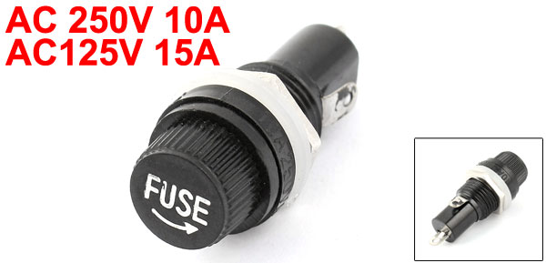 Product Name Fuse Holder Fit for Fuse 6 x 30mm Power AC 250V 10A /AC125V 15A Total Size 32 x 15mm/1.3" x 0.6" (L*D) Thread Diameter 12mm Material Plastic,Metal Color Black Weight 6g Package Content 1 x Fuse Holder - Reviews