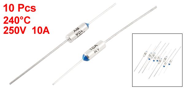 AC 250V 10A Axial Leads 240 Celsius Temperature Electricity Thermal Fuses 10 Pcs