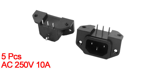 AC 250V 10A C14 Male PCB Board Soldering Power Adapter Socket 5Pcs