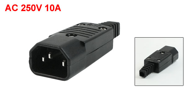 AC 250V 10A C16 Male Plug Power Cable Connector Black for Rice Cooker