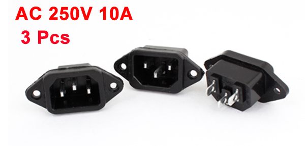 AC 250V 10A Cable IEC320 C14 3P Connector Adapter Power Inlet Socket Black 3 Pcs
