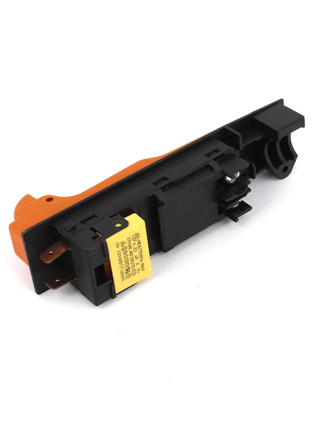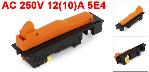 DetailsAC 250V 10A DPST Momentary Locking Electric Tool Trigger Switch Black Orange  Main Color Black,Orange Product Name Electric Trigger Switch Brand DMiotech Net Weight 70g Country of Manufacture CHINA Rated Voltage/ Current AC 250V 12(10)A 5E4 Model RG27 Package Content 1 x Electric Trigger Switch Total Size (Approx.) 13 x 3 x 6cm/ 5.1" x 1.2" x 2.4"(L*W*T) Material Plastic Contact Type DPST Lock Type Lock on
