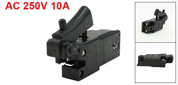 Product Name Electric Tool Switch Action Type DPST, Normally Open Lock Type Lock on(Manual Operation) Technical Parameter AC 250V 10A Size 8.2 x 2.2 x 5.3cm/ 3.2" x 0.9" x 2.1" (L*W*H) Material Plastic, Metal Color Black Net Weight 55g Package 1 x Electric Tool Switch - Reviews