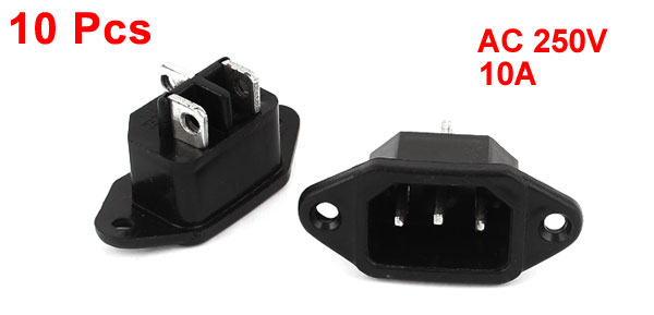 AC 250V 10A IEC320 C14 3 Pin Male Plug Inlet Black Plastic Power Socket 10 Pcs